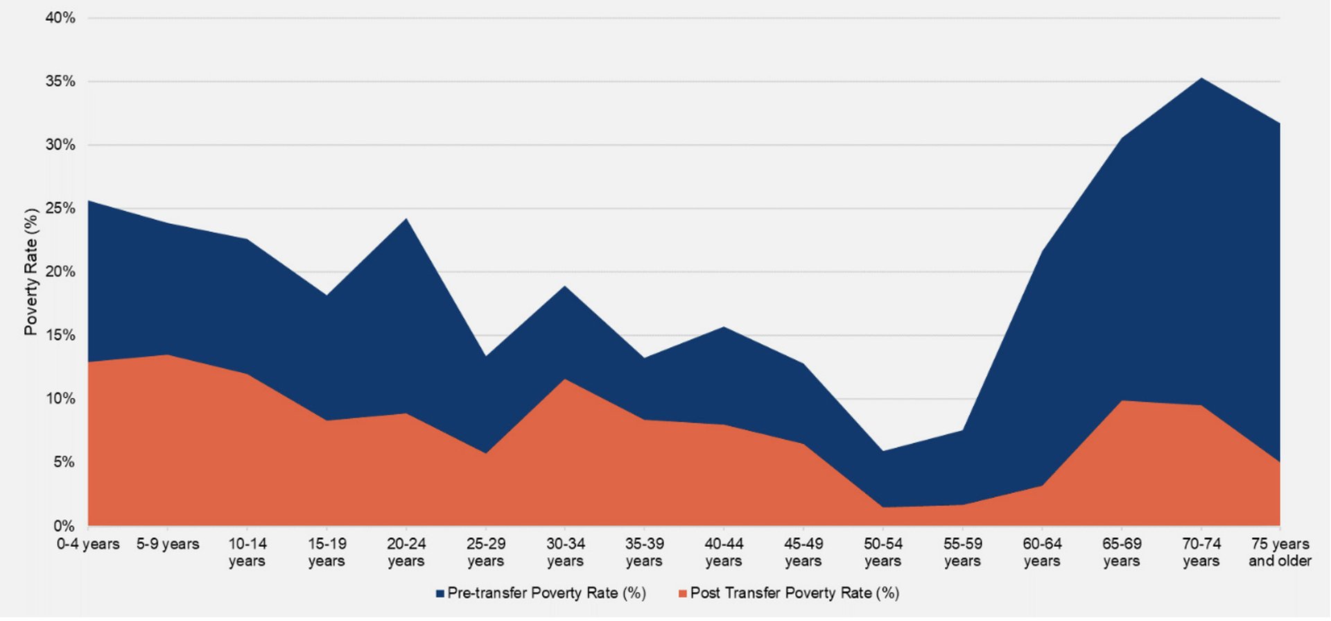 Figure 2 Impact of the Child Benefit, Old Age Pension and Power Subsidy combined on poverty, by age